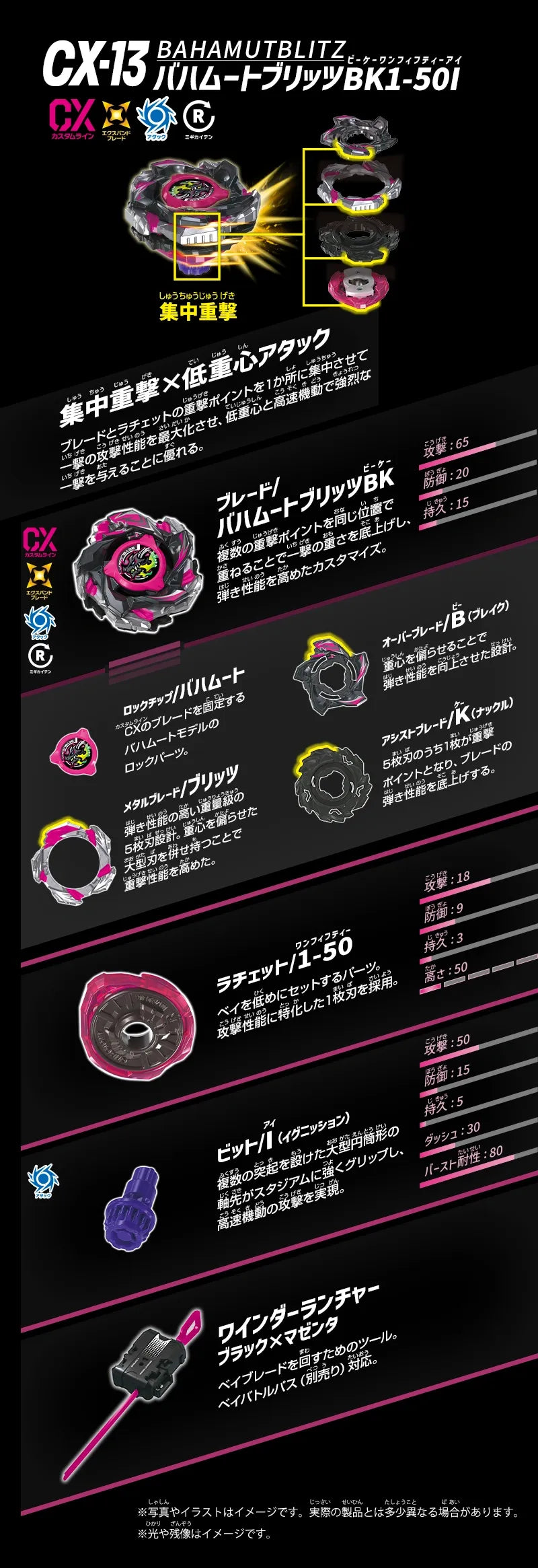 Bahamut Blitz BK1-50I excels as a defensive-stamina hybrid that can adapt to multiple battle scenarios. The combination of the balanced Bahamut blade, mid-height 1-50 ratchet, and defensive Ball Knuckle bit creates a resilient competitor. This Beyblade excels in: